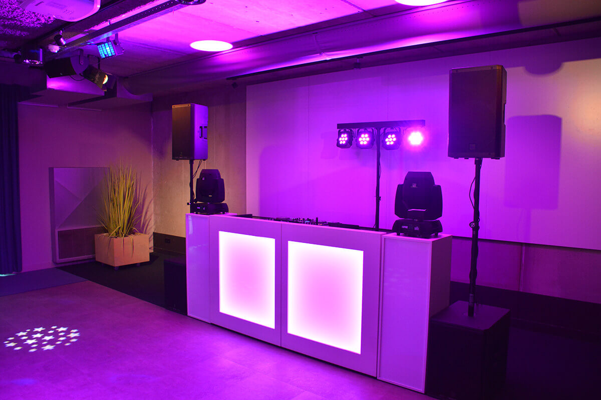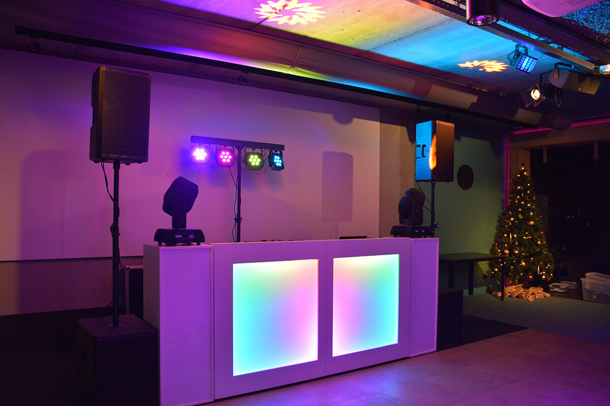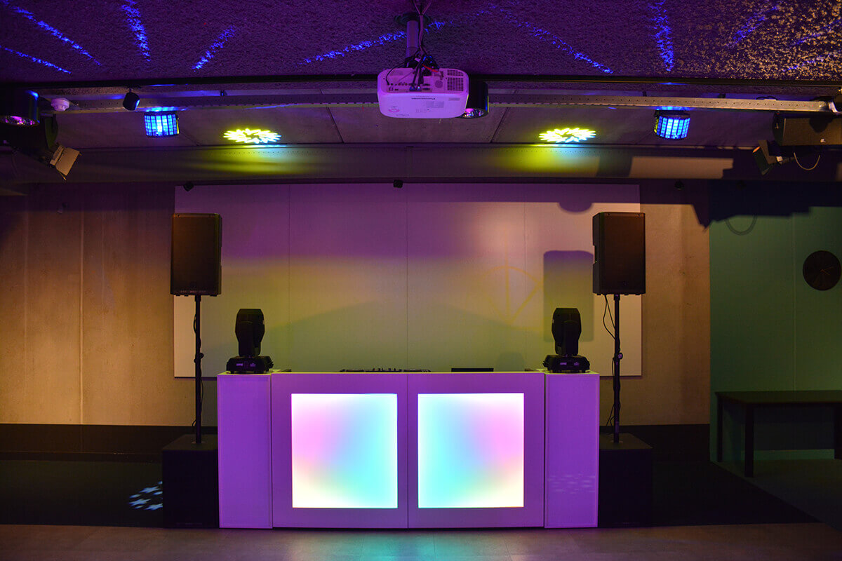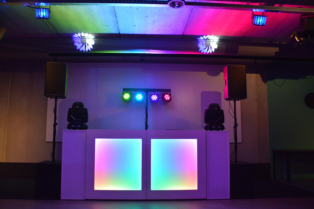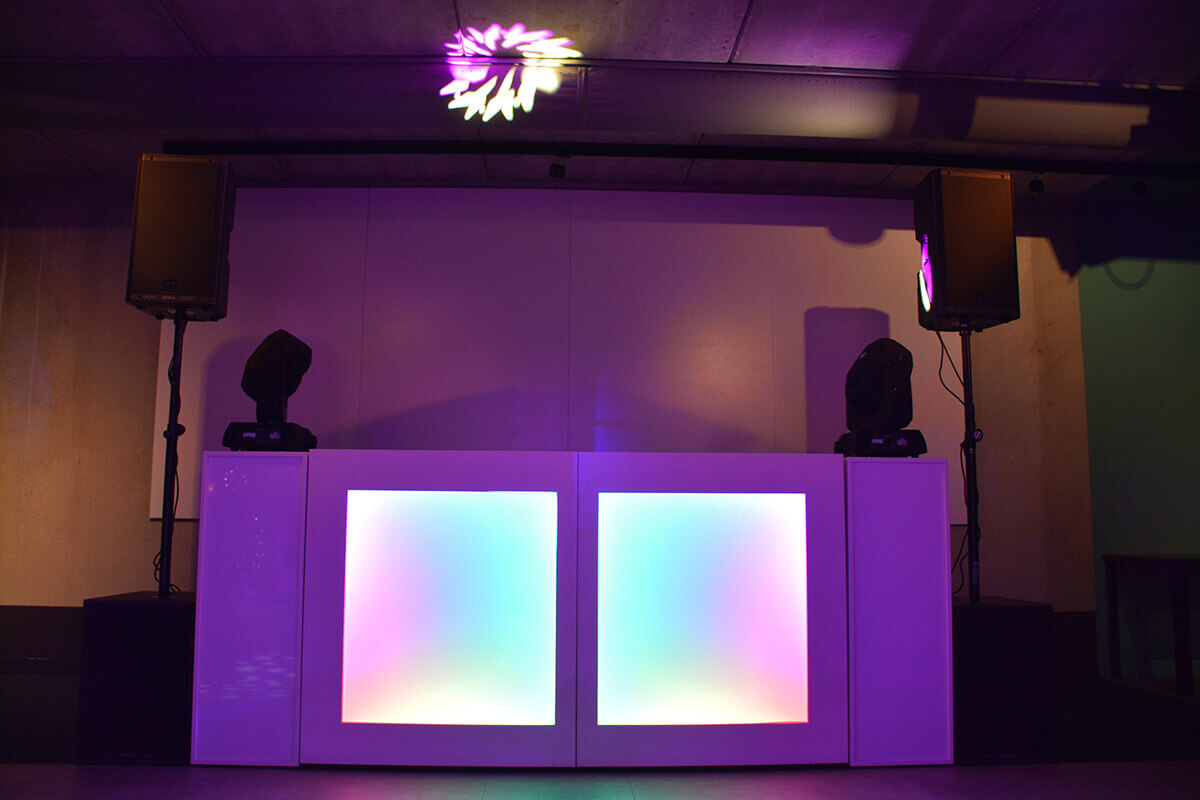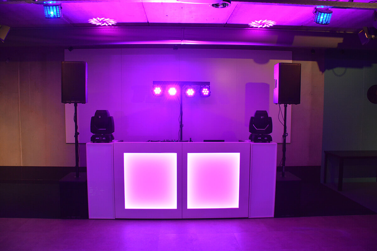 • DJ-booth met sokkels (verlicht)