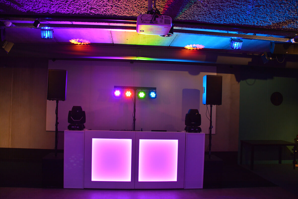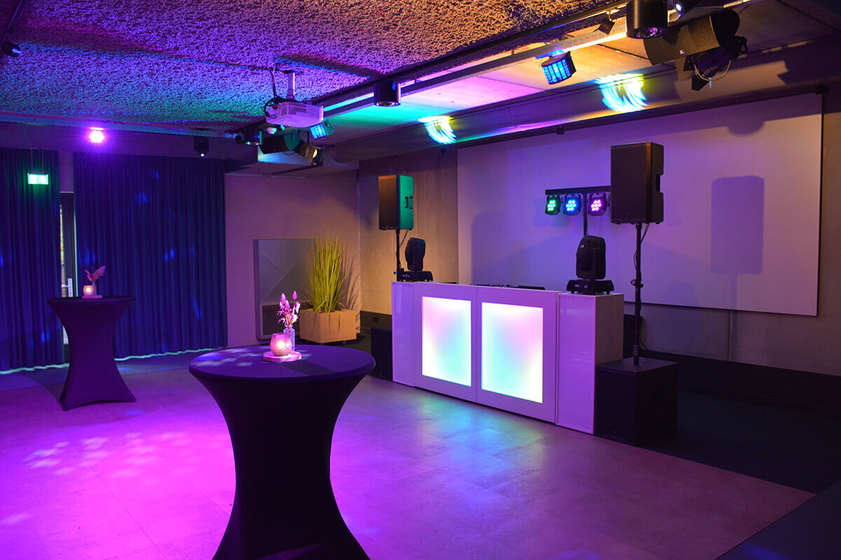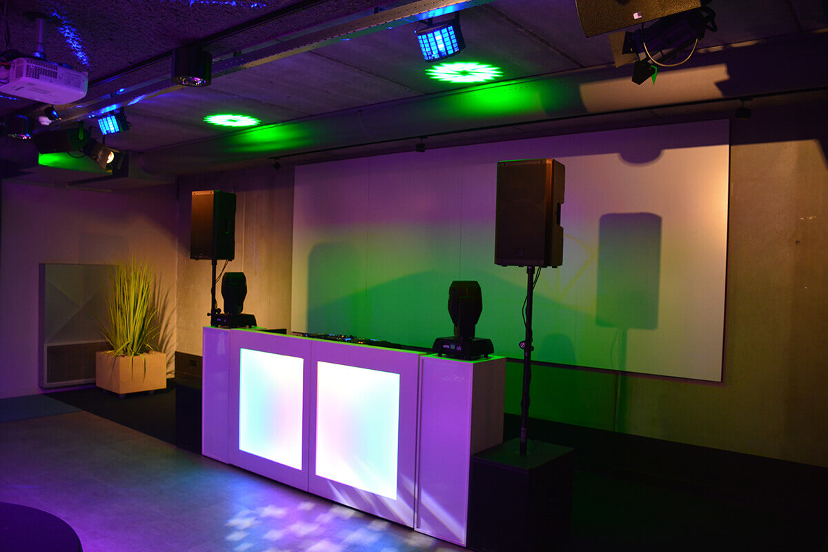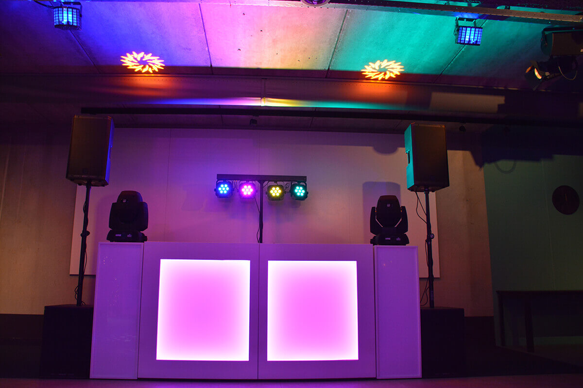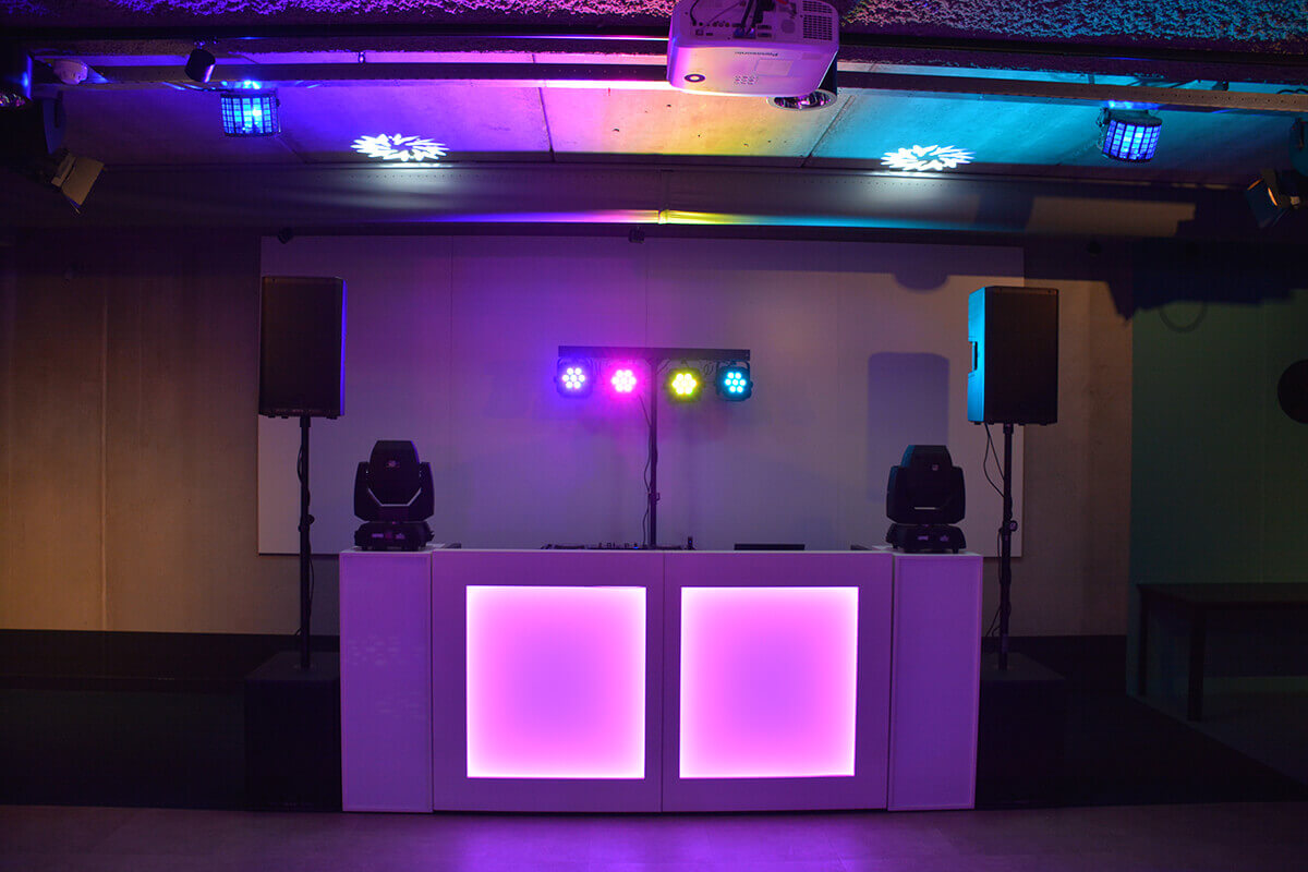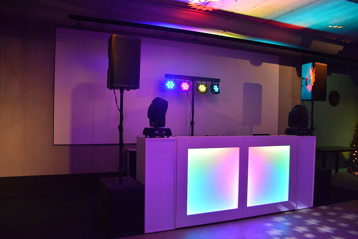 • DJ-booth met sokkels (verlicht)